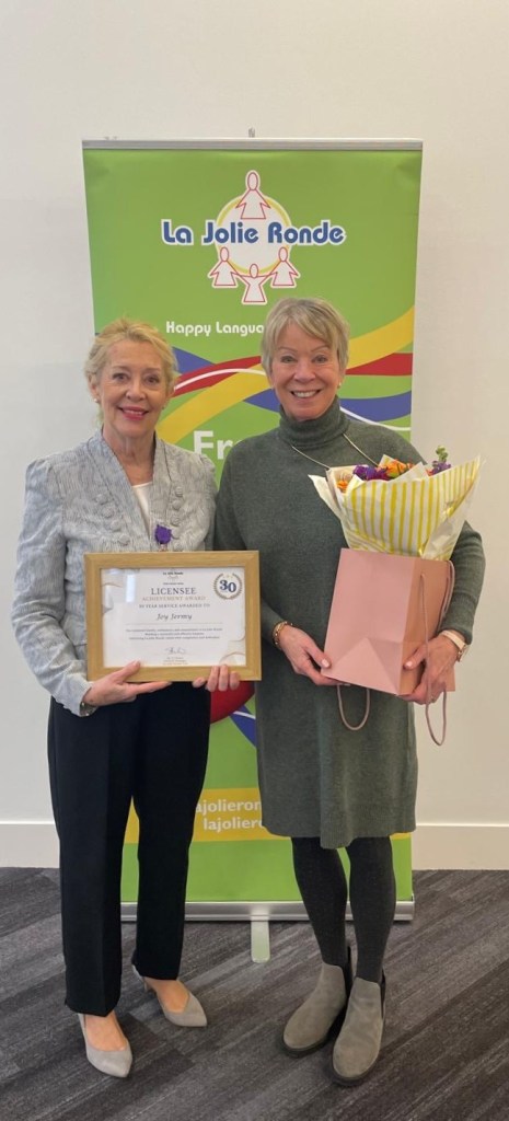 Joy was recently honoured at La Jolie Ronde’s annual network meeting, where she received a 30-year service award and a special gift from Colette Hallam, the company’s founder, who personally selected Joy all those years ago.